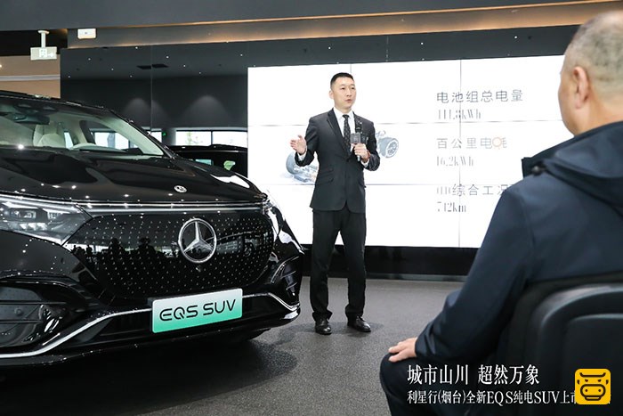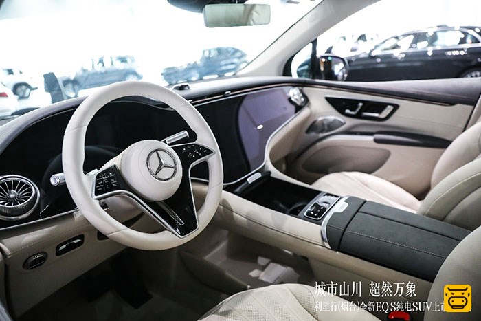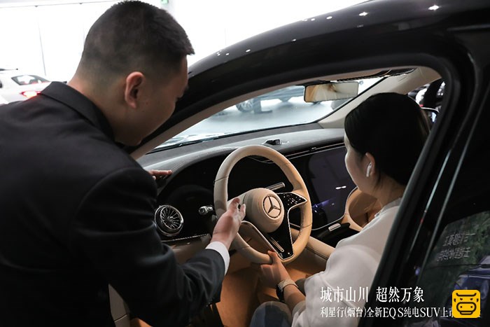 【牛奔购车网】2023年5月28日,城市山川行所至,天地万象自超然。能越野的全新EQS纯电SUV在利星行(烟台)展厅震撼亮相!